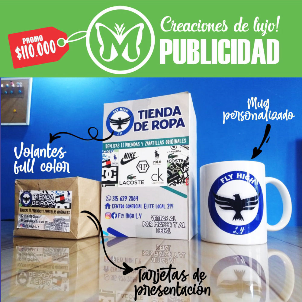 Tarjetas de presentación + Volantes full color + Mug personalizado por sólo $110.000